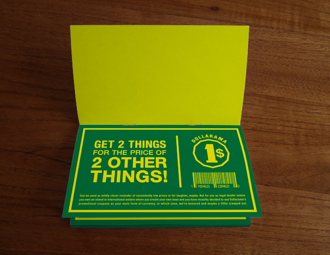 Keeping the brand top of mind once the consumer left the store, we came up with these nifty little coin clings to be applied by the cashiers. They were created in every denomination, to be sure that noone left without one. We also created coupon books to be handed out in the vicinity of new store openings, in line with the in-store poster work.